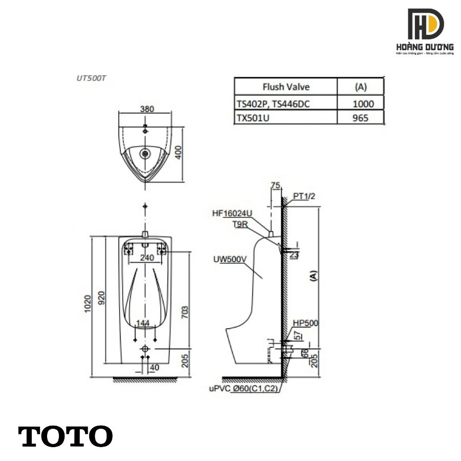 Thông số kỹ thuật bồn tiểu nam TOTO UT500T#XW treo tường