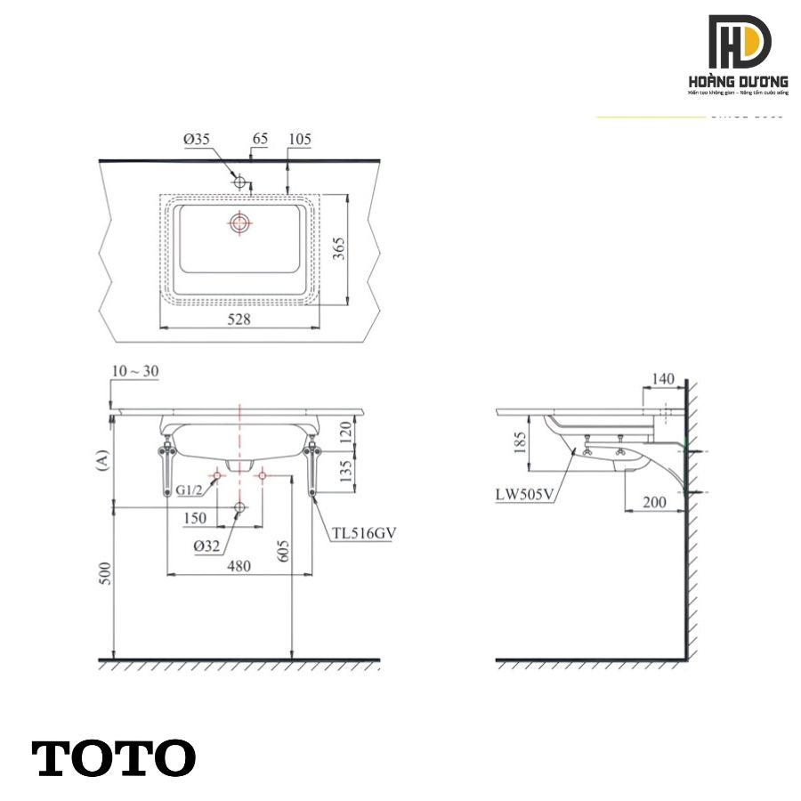 Bản vẽ kỹ thuật chậu lavabo TOTO LT505T#XW âm bàn