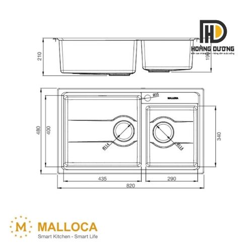 Thông số kỹ thuật chậu rửa chén Malloca MS-5082W Inox