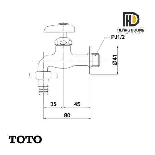 Thông số kỹ thuật của vòi lạnh TOTO T26-13 gắn tường
